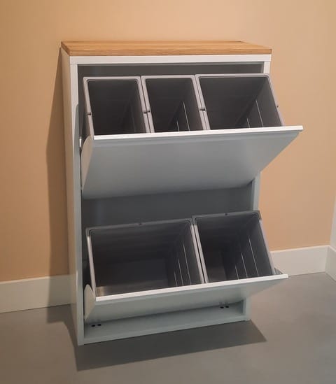 Quint de afvalbak met 5 binnenemmers afgewerkt met eiken paneel.